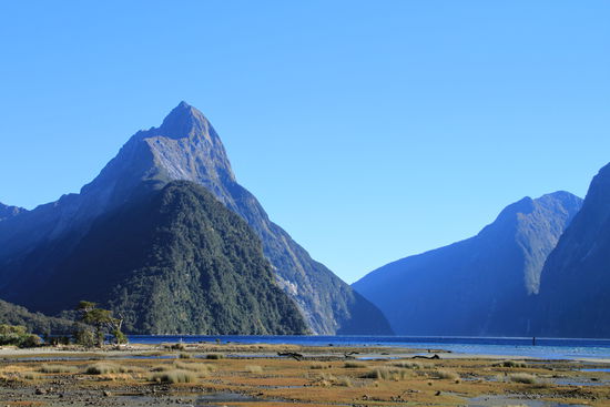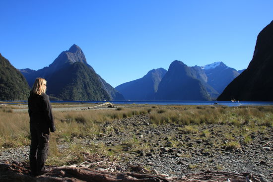 Am Milford Sound angekommen genossen wir die von Postkarten bereits bekannte Aussicht in den Fjord:
