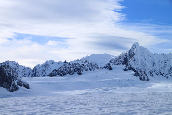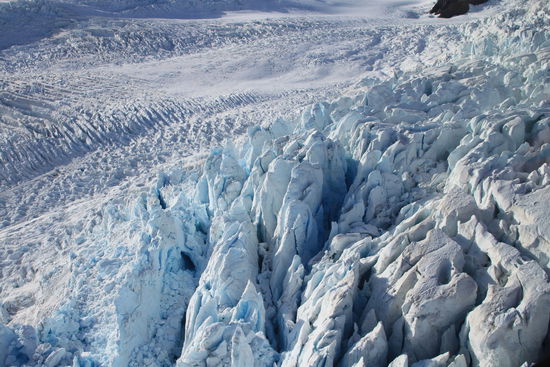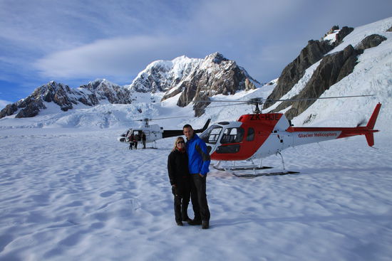 Am nächsten Tag wartete dann ein absolutes Highlight auf uns. Wir gingen mal wieder "in die Luft" und schauten uns die Gletscher von oben an. In einem Helikopter überflogen wir die Berge hier - und waren absolut "von den Socken". Wenn man unten steht und "nur" die Gletscherzunge sieht, kann man sich nicht vorstellen, was da oben auf dem Berg noch an Eismassen liegt.