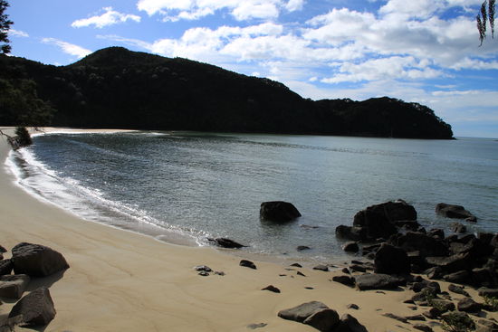 wir haben nochmal einige Kilometer zurückgelegt um auf der Südinsel unser letztes Ziel zu erreichen: den Abel Tasman Nationalpark. Obwohl es der kleinste Nationalpark Neuseelands ist, ist er doch der am meisten besuchte! Im Sommer muss man eine Tour dorthin sehr lange im Voraus buchen. Wir sind nachmittags zum Buchungsbüro und haben ein "Wassertaxi" für den nächsten Morgen gebucht. Das ist einer der vielen Vorteile wenn man hier in der Nebensaison reist!