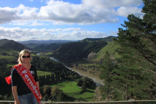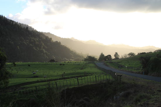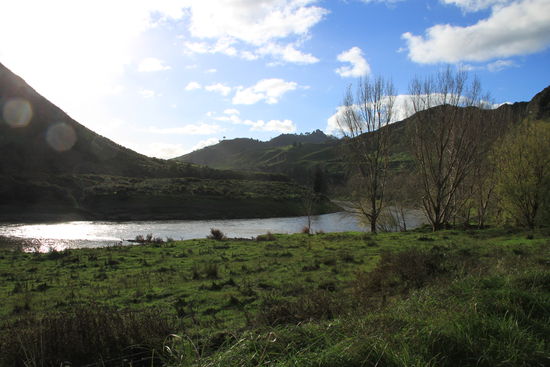 Und schließlich ging es für uns - leider nur mit dem gemieteten Toyota-Bus - weiter. Am Fluss entlang fuhren wir wieder einmal eine kurvenreiche Straße (dieses Mal war Melli der Fahrer - damit wir die Fahrt auch genießen und Fotos machen konnten . Die Landschaft war wieder mal der Knüller. Unglaublich, allein das saftige Gras hier. Es ist einfach definitiv grüner hier in Neuseeland!