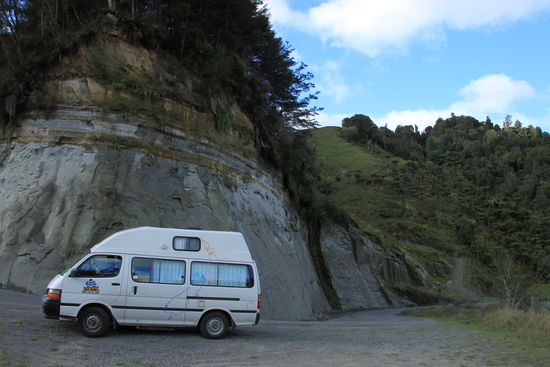 Am nächsten Tag ging es für uns dann aber erst einmal weiter an der Westküste entlang zum Mount Taranaki. Ebenfalls ein Vulkan, ebenfalls sehr hoch... und sobald man ihn gesehen hat, zieht er magisch an. Dieser Kegel, der obere Teil schneebedeckt... davon wollten wir mehr sehen. Irgendwie war das mit den Wandertouren hier aber nicht ganz so einfach. Entweder hatten die Leute in den verschiedenen Touri-Büros keine Lust uns eine gescheite Auskunft zu geben, oder sie hatten wirklich keine Ahnung. Da das Wetter und v.a. die Sicht aber sowieso nicht soo toll waren, sind wir den Berg ein kleines Stück hochgefahren, haben die "mega Skipisten" bewundert und sind weiter zu unserem nächsten Ziel...