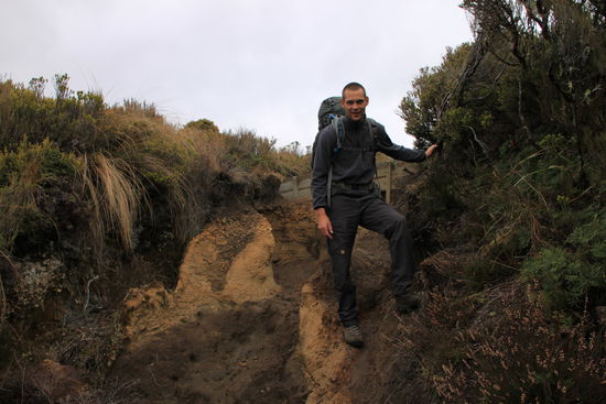Leider war das Wetter am ersten Tag nicht wirklich toll und wir liefen stundenlang durch die selbe öde Buschlandschaft ohne auch nur einmal einen Blick auf die schneebedeckten Vulkane werfen zu können - die Wolken haben ihren Job echt "supi" gemacht