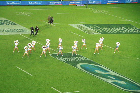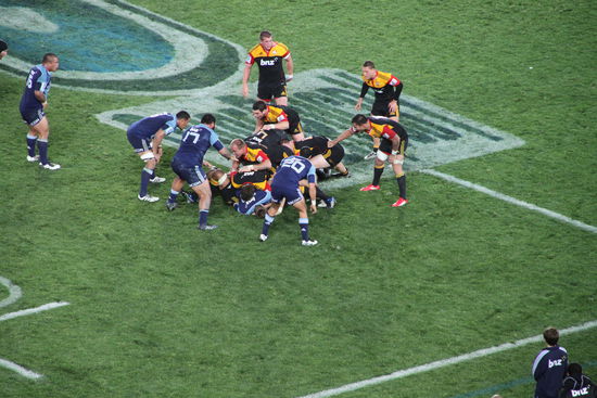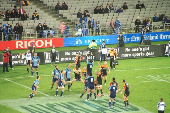 Ach ja: es spielten übrigens die Blues (Auckland) gegen die Chiefs (Hamilton). Und da die beiden Städte sehr nah beieinander liegen, handelte es sich so um eine Art Derby. Auckland war vor dem Spiel auf Platz 1 der Tabelle, die Chiefs am hinteren Ende.
