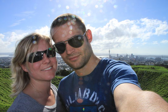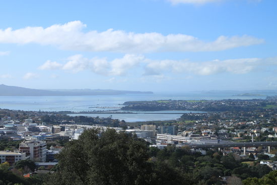 Am nächsten Tag beehrte uns die Sonne einen wunderschön warmen Tag. Klar dass wir die Gelegenheit nutzten und erst einmal auf einen der 50 Vulkane auf denen Auckland gebaut ist, fuhren und die Aussicht auf die Stadt genossen. Das kann sich sehen lassen: viele Buchten, viele grüne Vulkankegel, viele viele Häuser...