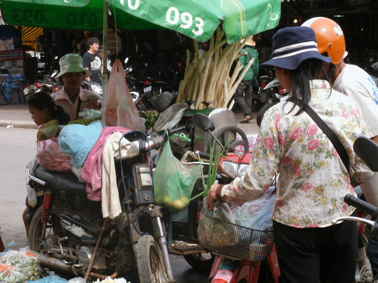 Nach einer durchgeschlafenen Nacht in einem schoenen, hutzeligen Hostel (Golden Temple) im Herzen von Siem Reap (Norden von Kambodscha) haben wir heute den Tag mit Laufen duch die Touristenmetropole verbracht (incl. "you want to look shop" und "need Tuk-Tuk" alle 2 Sekunden). Hier gibt es alles was das Touri-Herz begehrt und ist vielleicht der beste Einstieg fuer unsere Reise durch Kambodscha. Alles ist zwar recht teuer, aber man muss sich keine Sorgen machen zu verhungern, geschweige denn Hunde essen zu muessen. In dem Hostel, wo wir gerade sind, bekommen wir morgen sogar eine feine Massage am Abend uns Alles ist sehr gemuetlich! Morgen geht es dann schoen nach Angkor Wat den ganzen Tag (bei Sonnenaufgang hin und bei Sonnenuntergang zurueck).