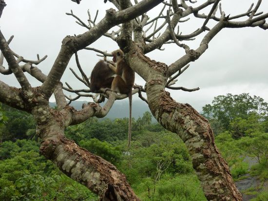 Auf dem Weg nach oben zu den Höhlen.... - sie sind überall die lustigen Affen