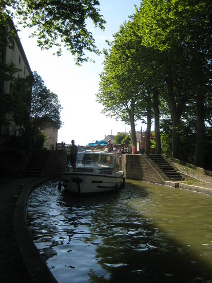 Kurz nach fünf können wir ablegen. Wir durchfahren das Hafenbecken Castelnaudarys, das einen schönen Blick auf die mittelalterliche Stadtkulisse bietet und fahren kanalabwärts in Richtung Carcassonne.