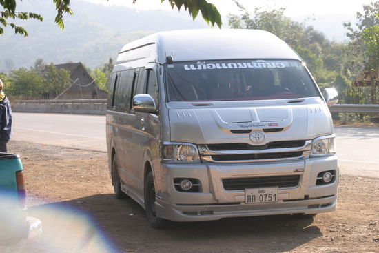 Püntlich um 8:00 Uhr am nächsten Morgen bekommen wir gesagt wir sollen nicht mit dem Bus fahren. Anscheinend sind noch 2 Plätze in der Luxusvariante eines Minivans frei.