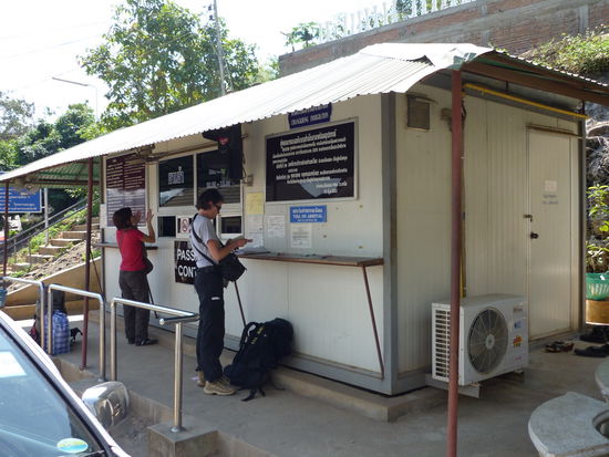 Dieser soll auch noch direkt bis an die Grenze fahren....perfekt. Also sind wir bereits um 12:00 Uhr an der grenze. Die Ausreiseformalitäten in Houay Xai sind schnell erledigt. Ab ins Boot und die Einreise nach Thailand ist ebenso schnell erledigt. Wir haben sogar noch Zeit für einen super leckeren Salat und einen frischen Kaffee.