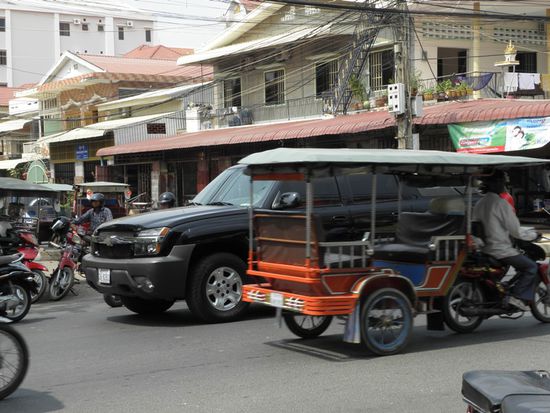 Dann ging es quer durch die Stadt, eine Stadt der unglaublichen Gegensaetze. Wir haben noch nie an einem Tag soviele Hummer, Range Rover und Lexus gesehen wie heute.