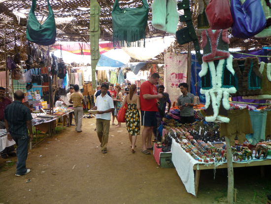 Am 30.12. fahren wir mit dem Bus nach Anjuna, etwa 80 Km nördlich von Benaulim an der Küste. Man sagte uns, dort wäre nun der alle 14 Tage stattfindende größte Flohmarkt Indiens.