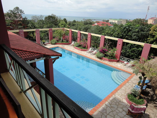 Die Fahrt vom Zentrum hier raus war ziemlich lange. Zum Glück gibt es ganz in der Nähe zum einen das beste Seafoodrestaurant, das Chhne Meas und auf dem Weg dahin die Airport Disco. Beide werde ich heute Abend besuchen. Damit ist die Abendunterhaltung gesichert. Den Mittag verbringe ich - alleine - am Pool. Allerdings habe ich erst einmal sehen müssen, wo ich ein Handtuch für den Pool herbekomme. Überhaupt scheint das Hotel ziemlich ausgestorben zu sein. Es ist an sich schon nicht sehr groß und es scheinen nur sehr wenige Gäste anwesend zu sein.