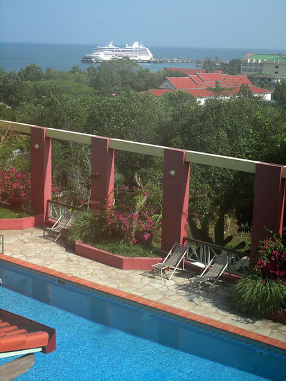 Der Tempel lieg auf dem Victory Hill, ist recht hübsch und man hat eine ganz nette Aussicht auf Sihanoukville. Es sind überraschend viele ältere Touristen hier aber da fällt mir ein, dass ich heute Morgen beim Blick aus meinem Fenster ein großes Kreuzfahrtschiff an einer Mole liegen sehen habe. Ob hier öfter solche Potte anlegen?