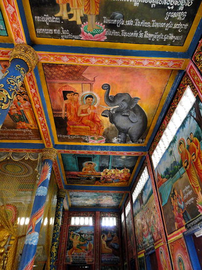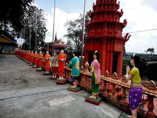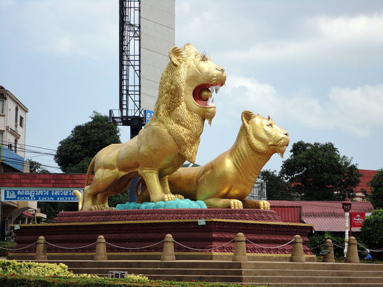 So, jetzt hat es mich richtig erwischt. Es war wohl nicht nur geschmacklich, sondern auch gesundheitlich die falsche Wahl. Ich habe mir eine ordentliche Lebensmittelvergiftung eingefangen. So langsam kenne ich das ja. Beim Frühstück war noch alles ok. Das sehr spärliche Frühstück besteht aus Kaffee und ein paar Scheiben Baguette mit etwas Marmelade und Butter. Für alles andere muss man zuzahlen. Bei dem Übernachtungspreis finde ich das heftig. Aber das ist wohl eher französische Lebensart. Von einem TukTuk lasse ich mich für 5 USD erst zu einem Tempel und dann zum Denkmal mit den Goldenen Löwen fahren.
