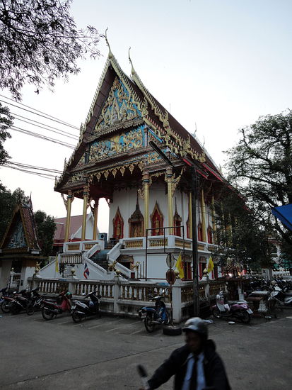 Einen kleinen Spaziergang um die Blöcke mache ich noch und stoße überraschenderweise nach mehreren weniger schönen Häuserzeilen auf einen Straßenzug mit recht schönen Holzhäusern. Einen ganz hübschen kleinen Tempel entdecke ich auch noch. Dann wird es Zeit, dass ich mich wieder ausruhe.