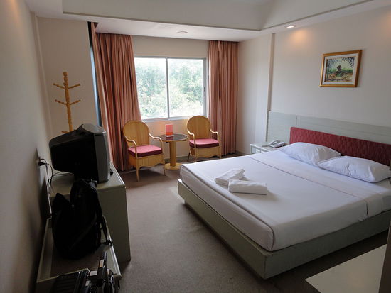 . Ich laufe weiter die Straße entlang und gar nicht lange danach bin ich wieder and er Kreuzung wo ich rechts abbiege und nach ein paarhundert Metern zur Lodge komme. Die Bezeichnung "zentrales Stadthotel" finde ich etwas daneben anbetracht der Tatsache, dass ich auf der Ausfallstraße aus Chanthaburi unter dem Schild "Bon Voyage" durchlaufe und dann ach Hundert Metern oder so mein Hotel auftaucht.
