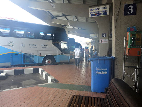 Wir sind beim Start gerade einmal 3 Fahrgäste. Allerdings fährt er nur zwei mal um die Ecke, dann lädt er die nächsten ein. Ach 10 Minuten halten wir am zweiten, offensichtlich neuen Busbahnhof außerhalb von Rayong im Nordwesten. Danach ist der Bus etwa halb besetzt und wir fahren die knapp vier Stunden bis Bangkok durch. Dort fährt er von der Schnellstrasse runter und setzt nach und nach die Thais ab bis wir zum Busbahnhof Ekamai, dem Südostbusbahnhof in der Sukhumvit kommen. Das ist der einzige Busbahnhof mit direkter Anbindung an die Hochbahn. In Rayong habe ich gesehen, dass auch der Nordbahnhof direkt angefahren wird, Außerdem gibt es eine Direktverbindung nach Nakon Ratchasima. Das finde ich allerdings sehr interessant, weil es Möglichkeiten für neue Reiserouten eröffnet.