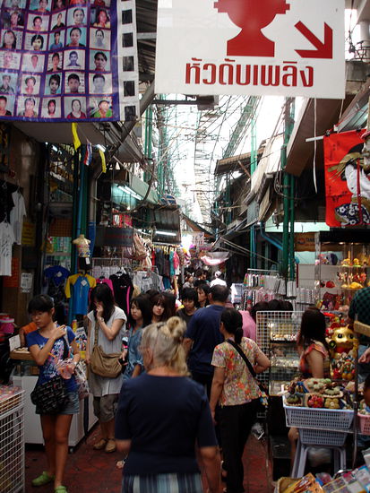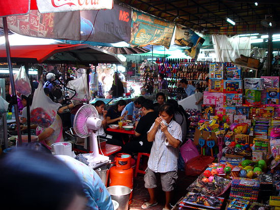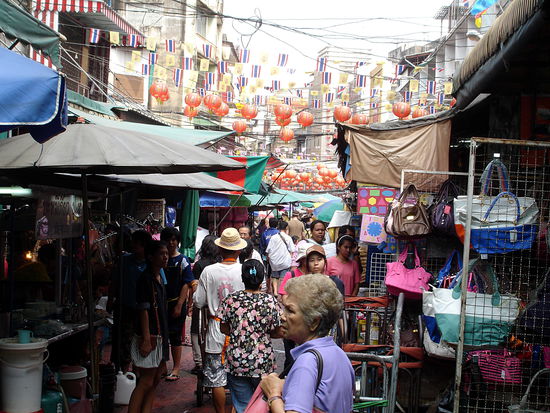 Von hier habe ich mich nach dem Stadtplan entschieden, die Soi Wanit I weiter zu laufen. Einfach deshalb, weil es von der Richtung her passt und sie keine so ganz große Straße ist. Tatsächlich entpuppte sie sich als Volltreffer. Am Anfang war sie noch breit genug für das eine oder andere Auto, wurde dann aber immer schmaler und verwandelte sich in eine, über weite Strecken überdachte, Bazargasse. Hier gibt es einfach alles. Es macht Spaß an den Ständen entlang zu bummeln. Man sollte allerdings Zeit mitbringen. Zwei bis drei Stunden sind ruckzuck weg und man kommt auch bei Eile nicht wirklich schneller durch, Dazu ist es einfach zu voll.