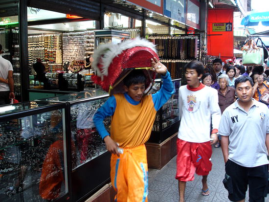 Heute bin ich um 09:00 durch meinen Wecker geweckt worden wie das bei mir eher üblich ist. Ein besonderes Programm habe ich nicht. Ich möchte gerne einmal durch das chinesische Viertel schlendern. Da war ich bisher nur ein einziges Mal. Vorher werde ich mir aber noch die Station Makkasan anschauen. Mit der Metro ist das eine Haltestelle von der Sukhumvit. Anders als beim Airportzug heißt sie bei der Metro "Petchaburi". Wobei ich mich laut Stadtplan bei der Haltestelle der Eisenbahn "Asoke" befinde. "Makassan" ist ein ganzes Stück weiter westlich. Unten, wenn man aus der Metro aussteigt, gibt es erst einmal keinen Hinweis auf den Airportexpress. Um nicht den falschen Ausgang zu nehmen frage ich am Fahrkartenschalter. Die Dame meint "Ausgang 3, dann links". Am oberen Ende der Rollltreppe sehe ich ein Hinweisschild "Airportrain Link". Dies ist und bleibt der einzige Hinweis. Wenn man aus dem Untergrund auf die Straße rauskommt befindet sich die Bahn hinter / über einem. Somit ist sie gut zu erkennen, ganz im Gegenteil zum umgekehrten Weg, wenn man vom Flughafen kommt und die Metro sucht.