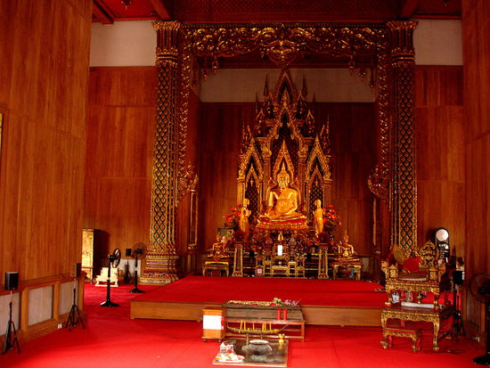 Er gehört zu den wenigen, bei denen der Bot, also die Halle in der sich die Buddhastatue befindet zweistöckig gebaut ist. Ich war nur unten drin und hier werden lauter Amulette und Edelsteine ausgestellt und verkauft. Auf dem Hof befindet sich ein großes Schiff aus Stein. Welche Bewandtnis es mit dem aus sich hat weiß ich auch nicht.