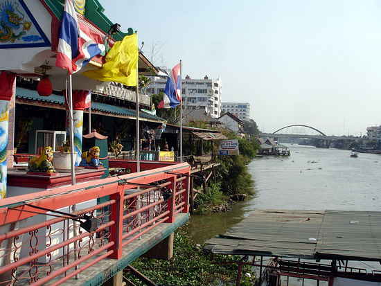 Gegenüber vom Bahnhof gibt es eine Fähre für 3 B über den Fluss mit der man sich den unangenehmen Weg über die Brücke spart. Ich wollte einmal erkunden, wie weit es zum Nachtmarkt ist und ob ich die Besichtigungen zu Fuß machen kann weil Know-How dringend empfiehlt ein Fahrrad zu mieten.