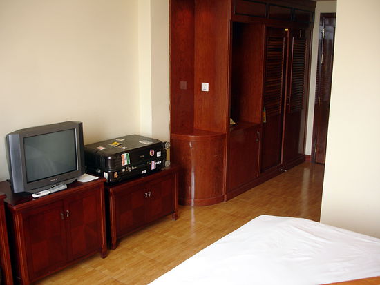 Um 12:00 waren wir etwa in Battmbang wo ich an einem Kreisverkehr abgesetzt wurde. Bisher bin ich immer davon ausgegangen, dass der einzige Nachteil, dass ich on Rucksack auf Koffer umgestiegen bin ist, dass ich mit dem keine Motorradtaxen mehr nutzen kann. Jetzt wurde ich eines Besseren belehrt. Ein Motorradtaxifahrer schnappte meinen Koffer klemmte ihn vor sich zwischen seine Beine, ich setzte mich hinter ihn und ab ging es in mein Hotel Stund Sangke. Der Türsteher fragt mich ob ich eine Reservierung habe, der Rezeptionist auch. Ich sage ja und denke mir, dass das Hotel bei dem günstigen Preis wohl ausgebucht ist. Inzwischen weiß ich dass dem definitiv nicht so ist. Ganz im Gegenteil. Es gibt inzwischen so viele Hotels hier, dass ein Vielfaches der Touristen kommen könnte und immer noch leere Zimmer da wären. Über Expedia habe ich etwa 24 € pro Nacht für dieses Viersternehotel gezahlt mit Swimmingpool, Frühstücksbuffet (das nicht besonders toll ist, aber ok) und kostenlosem Wi-Fi, das gut auf dem Zimmer funktioniert.