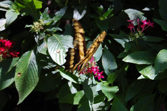 In der Mitte vom Park gibt es das Orquideorama, das ist ein risieges Dach in Form von Bienenwaben. Soll irgendwie einer Orchidee ähneln. Die Orchidee ist übrigens die Nationalblume von Kolumbien. Unter diesem Dach im Schatten waren mehrere Gymnastikprogramme am laufen, wo einfach jeder die Chance hat, mitzumachen. Manche haben sogar ohne Matte mitgeturnt. Der ganze Garten hat uns irgendwie echt bezaubert. Ich weiß gar nicht, wie ich es beschreiben soll. Er ist eine ruhige Oase in der Stadt und da der Eintritt gratis ist, sind sehr viele Studenten (die Universidad de Antioquia ist ganz in der Nähe) im ganzen Park verteilt und lernen oder üben mit ihren Musikinstrumenten. Wir haben ein Blasorchester gehört, viele Streichorchester, Trommler und auch Einzelpersonen, die mitten in schönster Natur ihre Stücke proben. Wir sind auch einigen Fotografen begegnet, in Begleitung von jungen Frauen in glitzernden Prinzessinenkleidern. Wir waren natürlich auch fleißig dran am Fotografieren. Wir haben die Kamera immer wieder hin und hergereicht, weil wir beide immer wieder Details entdeckt haben, die wir fotografieren wollten. Neben vielen wunderschönen Blumen und interessanten Gewächsen gab es auch einen Wüstengarten mit allerlei verschiedenen Kakteen und einen Palmengarten. Ein Höhepunkt am Schluss war noch das Schmetterlingshaus, wo man durchlaufen konnte und hunderte schöne Mariposas (Schmetterlinge in Spanisch) einem um den Kopf geflogen sind. Haben da noch sehr viele schöne Schnappschüsse gemacht. Ach ja, was auch noch sehr interessant war: viele junge Leute haben außergewöhnliche Dinge geübt im Park, wie zum Beispiel japanischen Schwertkampf oder Cheerleading. Im Palmengarten haben wir dann noch ein ganz faszinierendes Pärchen entdeckt, die eine bestimmte Art von Gymnastik gemacht haben. Ihr müsst einfach die Fotos anschaun, wir können es gar nicht beschreiben. Auf alle Fälle hatte er sehr starke Arme und Beine und sie hat nie den Boden berührt... Inwischen hat sich bei uns beiden der Hunger bemerkbar gemacht und wir haben schweren Herzens diese Oase verlassen, um uns etwas zu essen zu suchen. Irgendwie hatten wir ja voll Lust auf Italienisch...
