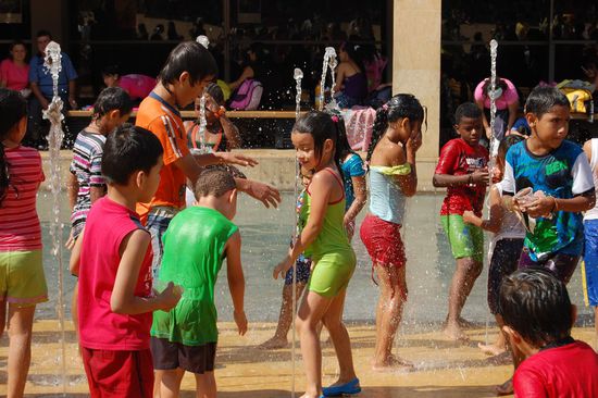 Da bin ich richtig erschrocken, hab gar nicht gecheckt, dass das Becken nicht zum Reingehen war, sondern nur die vielen Fontänen zum Erfrischen sind. Außerdem hab ich bis jetzt immer gedacht, dass ich nicht so auffall hier in Südamerika, weil ich eh auch ein dunkler Typ bin. Falsch gedacht, ich schau also doch aus wie ein Gringo (Nordamerikaner)...