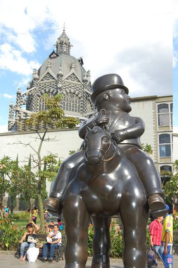 Das Gebäude soll eine Nähnadel mit Nadelöhr darstellen. Ist ein wichtiges Gebäude für die florierende Textilindustrie hier in Kolumbien.