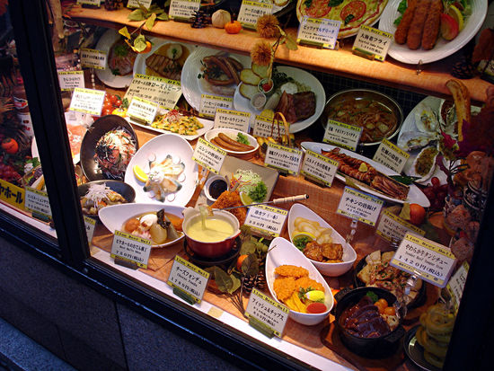 Toll finde ich, dass die meisten Restaurants ihre Speisen als Plastikmodelle im Schaufenster stehen haben. Zum einen sieht man schon vorher was einen erwartet und mann kann im Zweifelsfall einfach den Kellner mit rausholen und auf das gewählte Essen zeigen. Erstaunlicherweise sieht das Essen, das dann kommt auch tatsächlich ziemlich genau so aus.