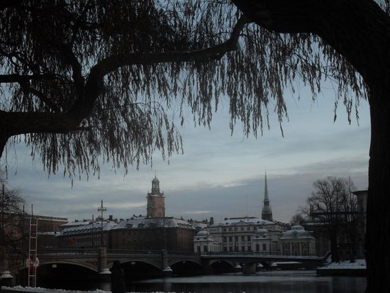 Im Folgenden mussten wir abermals entscheiden, wie es weitergeht. So beschlossen wir, über die winzige Insel Riddarholmen nach Kungsholmen zu gelangen, um dort zum Stadshuset zu kommen. Jenes Stadshuset lockte uns mit seiner Aussichtsplattform, von wo aus wir uns erhofften, einen Blick aus der Luft auf die ganze Innenstadt werfen zu können. Mittlerweile klarte es auch immer mehr auf und das Wetter wurde schöner und schöner. Ebenfalls war es auch gar nicht so kalt wie ursprünglich erwartet und so fühlten wir uns rundum wohl.