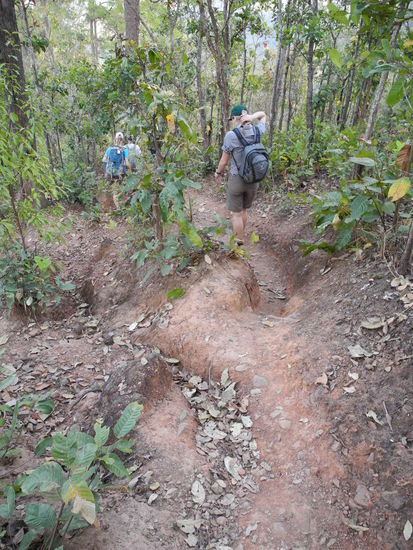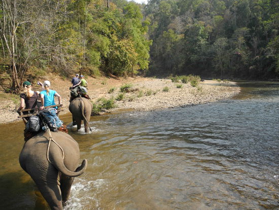 Der zweite Tag ging früh los. Eigentlich schon um 5 Uhr, weil dann alle Hähne des Dorfes ein Wettschreien veranstaltet haben!!! Kalt war es auch noch geworden, aber mit Schlafsack, allen Klamotten an und drei Decken ging es. Auch am heutigen Tag wurde wieder gewandert, was natürlich nicht weniger anstrengend war als am Vortag. Danach ging es aber zum Elefantenreiten und zum Bamboo-Rafting. Erschöpft beendeten wir die Tour nachmittags und schliefen alle schon auf der Heimfahrt im Auto ein.