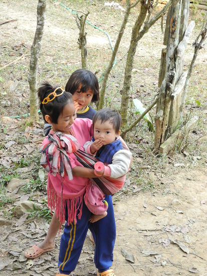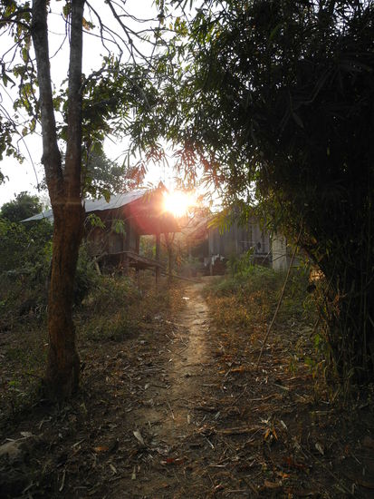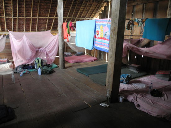 Abends kamen wir total erschöpft in unserem Dörfchen an, in welchen wir die Nacht verbringen sollten. Der letzte Weg runter hatte nochmals alle Kraft gekostet, weil es so steil und rutschig war und ich sogar zwei mal auf meinem Popöchen gelandet bin. Die anderen sind auch gut gerutscht und wie läuft unser Guide die Tour? Mit Flip Flops!!! Es ist unvorstellbar wie das funktionieren soll! Dann waren wir da: im Nichts. Ein wahnsinniges Gefühl. 21 Familien leben dort und sonst Kilometer weit nur Wald, kein Auto, kein Strom und sonst keine Touristen! Und einen Sternenhimmel, wie ich ihn noch nie gesehen habe...