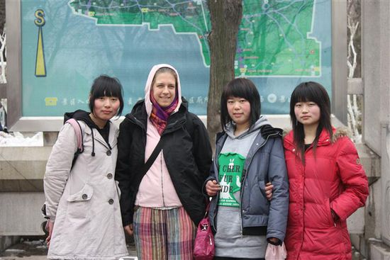 Hier musste ich auch gleich feststellen, dass wirklich nicht viele Ausländer nach Jinan kommen, denn schon nach dem Eingang wollten sich die ersten Chinesinnen mit mir fotografieren lassen Oft bekam ich auch ein "Hello" zu hören, dazu ein freundliches Lächeln. Als ich mit "Ni Hao", der chinesischen Begrüßung, antwortete, waren nicht wenige überrascht. Mit "Ni Hao" und "Xie Xie" (danke) ist mein Chinesischwortschatz allerdings schon komplett ausgeschöpft. Mehr muss man aber eigentlich auch gar nicht wissen, die Kommunikation klappt schon irgendwie!