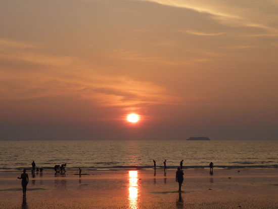 Der Klong Dao ist auch ideal zum Joggen. Fester Grund und nicht so steil abfallend, fast eben. Es gibt einen ziemlich grossen Unterschied zwischen Ebbe und Flut. Wenn ich abends am Strand war, war immer Ebbe und einheimische Familien liefen am Strand lang und sammelten Muscheln in Plastikeimern.