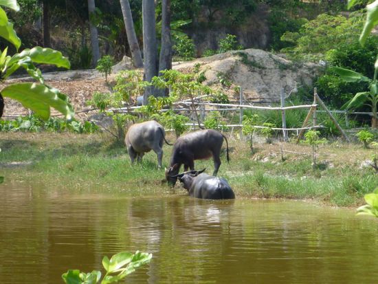 Sofort gefiel mir Ko Raya äußerst gut! Schön grün, keine Autos, dschungelig, schöne Palmen. Erstmal ging ich zur Lar-Bay, sah auf dem Weg Wasserbüffel. Danach weiter zur Siam Bay.