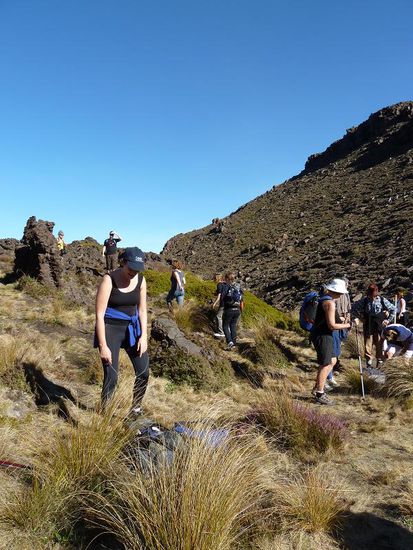 Diese Tour ist als eine der 10 schönsten Daywalks weltweit ausgeschrieben und verläuft über 19,4 km (!!!) von 1150m üNN auf 1886m üNN wieder auf 750m üNN und dauert 7-8h. Anfangs- und Endpunkt ist jeweils ein Parkplatz, zu welchem man mit einem Shuttle gebracht werden kann. Die Strecke ist in beide Richtungen "begehbar". Wir sind, so wie es auch empfohlen wird, die Route mit dem "kleineren" Anstieg gelaufen. Am Tag zuvor buchten wir in der Touri-information in Turangi das besagt Shuttle und fragten nach den Wetterbedingungen, den in dieser Höhenlage ist das Klima nicht ganz ohne und kann spontan umschlagen. Uns wurde gesagt, es sei größtenteils sonnig, einzelne Wolken, der Wind allerdings sei mit 50km/h relativ stark und uns wurde zu Mütze, Handschuhen, mehrlagiger Kleidung geraten. Natürlich waren wir ganz artig und befolgten die Empfehlungen... Zudem blieben wir 2 Tage (in weiser Voraussicht) auf einem sehr netten Campingplatz in Turangi. Also gings früh ins Bett...