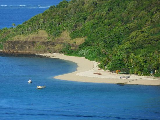 Der Chief sitzt üübrigens hinter einer Holzschale, die das Quasi-Nationalgetränk der Fijis enthält: Kava. Ein Pfefferwurzelextrakt, der mit Wasser vermischt und in einer Kokosschale gereicht wird. Schmeckt wie Pfützenwasser, sieht auch so aus und wirkt leicht bis mittelstark narkotisierend auf Lippen und Zunge. Eine Kavasession kann sich stundenlang hinziehen und resultiert in 30 Schalen Kava und einem tiefen Schlaf. Die Kavazeremonie ist aber auch eine Art Begrüßungsritual. Da mussten wir natürlich auch mitmachen. Wir Frauen saßen artig in einer Reihe hinter unseren Männern und nach bestimmten Verhaltensregeln nahme jeder einen Becher vom Schlammsüppchen. Es wurde gebetet und gesungen, dann war der Teil vorbei.
