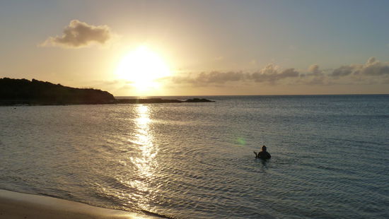 Vor Ort waren nur 4 weitere Gäste. So hatten wir die Insel fast für uns.. Es gab 2 Strände - einen für den Sonnenauf- und einen für den Sonnenuntergang..