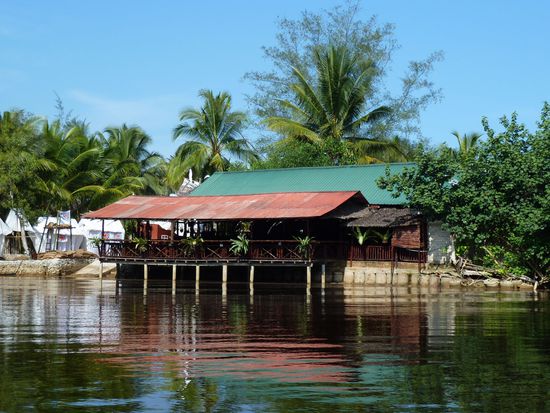 Unser Chalet für 3 Tage. Wenn es nicht schon in der ersten Nacht 7 Kakerlaken gegeben hätte, die dank Alex' Wanderschuhen nicht lange lebten, wärs die perfekte Bleibe gewesen. Aber immerhin mit schöner Verande plus Rattanstühlen.