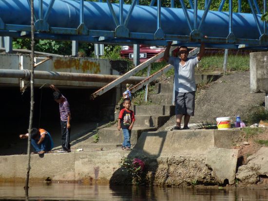 Bambule am Strand von Cherating. Es sind die letzten Tage der malayischen Schulferien und hier deutlich spürbar. Leider konnten wir nicht mitplanschen. Da der Islam an der Ostküste stark dominiert, ist es nicht empfehlenswert in Bikini oder Badehose ins Wasser zu gehen. Wenn, dann nur ganzkörperverhüllt....