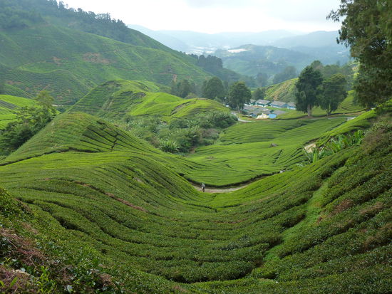 Da wir ja vom Strand nicht genug bekommen konnten, hatten wir nur 1,5 Tage in den Cameron Highlands, bzw in Tanah Rata. Der vollgepackte Minibus quälte sich leicht die Serpentinen hoch und der Fahrer zeigte uns, was den malayischen Fahrstil so ausmacht: Speed plus Risiko, denn überholen vor Kurven oder Anhöhen macht man hier gern.