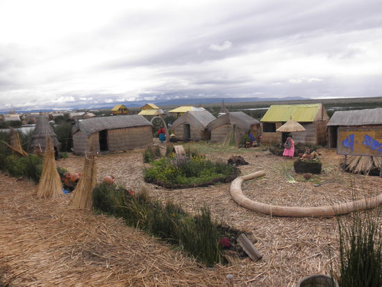 So sind wir am nächsten Tag in aller Frühe mit dem Boot zunächst zu den Floating Islands, oder auch Uros genannt, aufgebrochen. Das sind schwimmende Inseln aus Schilf auf dem Titicaca-See, auf denen ca. 6 Familien leben. Insgesamt gibt es etwa 65 solcher Inseln (nagelt mich nicht fest, ich habs nicht mehr so 100%ig in Erinnerung).. Wir haben zwei besucht; sehr interessant, uns aber leider zu touristisch (Haupteinnahmequellen dieser Inselbewohner ist der Tourismus..)