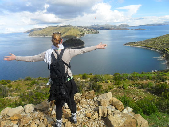 Am nächsten Tag haben wir uns aufgemacht, Stempel im Reisepass zu sammeln: Es ging für einen Tag nach Bolivien! Erneut früh am Morgen haben wir einen Bus über die Grenze nach Copacabana genommen. Dort eine Stunde gewartet, n netten Bolivianer kennengelernt und mit nem schläfrig-langsamen Boot auf die Isla del Sol übergesetzt. Leider hatten wir auf der Insel nur ca. 1 1/2 Stunden aufgrund der blöden Bootszeiten und haben deshalb einen geführten Rundgang gebucht, der, wie sich später rausgestellt hat, leider nur auf Spanisch war. Wir haben aber immerhin teilweise etwas verstanden und teilweise hat unserer brasilianischer Freund Bernado, der Spanisch mehr konnte, übersetzt. Erneut wunderschöne Sichten, Eindrücke, usw Später saßen wir wieder auf'm Boot zurück nach Copacabana, wo ein sehr geniales Musikvideo entstanden ist (siehe Sebs facebook Seite). In Copacabana und schnell in den Bus gehetzt und zurück nach Puno: auch sehr spannend, der Bus hatte einfach mal n anderen Firmennamen drauf, uns wurde aber versichert, dass es der Richtige sei. Nach ner halben Std Fahrt (nein, es war der richtige Bus, nicht uns auslachen; wir wollten grad was anderes erzählen. ^^) hielt der Bus in nem Dorf weiter an, wir sahen draußen die Schlange locals und dann passierte folgendes: Bustür auf, locals reinquetschen, bis auch der letzte Sitzplatz und ja auch der letzte Milimeter im Gang besetzt ist, Bustür zu. machen sie in Peru gerne mal (außer bei den teureren Busgesellschaften, da gibt es feste Sitzplätze und keiner darf da mehr rein).