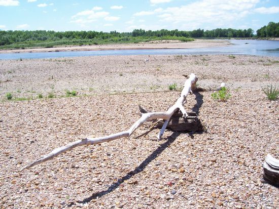 Was uns übrigens sofort ins Auge gesprungen war beim Betreten der Sandbank, waren die zahlreichen unterschiedlichen Abdrücke im Sand, von Vögeln, von Kaninchen, Nagetieren und... nun, eine Spur konnten keiner von uns einem Tier zuordnen. Zwischen den Abdrücken der vier Füße war eine schlängelnde Linie in den Sand gezogen, so als wäre eine Schlange einem Vierbeiner gefolgt. Aber naja, wir waren an der Loire, hier gibt es nichts was auch nur annährend gefährlich werden könnte.