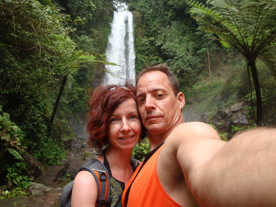 Danach sind wir zu den Gitgit-Wasserfaellen gefahren. Sehr schoen und beeindruckend aber auch hier erstmal der Nahkampf mit Dutzenden von Verkaeufern mit Sarongs und Sonnenbrillen bevor man unten ankommt. Und auch hier leider wieder ueberall Muell am Wegesrand.