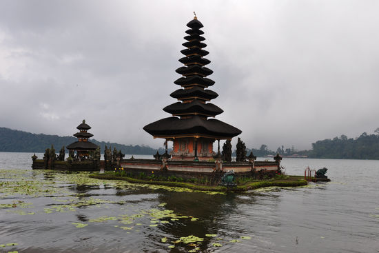 Dann gehts weiter zum Wassertempel Pura Ulun Danu am Bratan-See, anscheinend ein sehr beliebter Platz fuer Hochzeitsfotos, Brautpaare liefen hier mehrere rum. Die Tempel sind fantastisch, die ganze Bergkulisse im Hintergrund mit Wolken und Nebel sieht richtig unwirklich aus, nur die Motorboote mit Touristen, die die Tempel umkreisen stoeren ein bisschen. In der Hauptsaison wahrscheinlich echt zu voll hier.