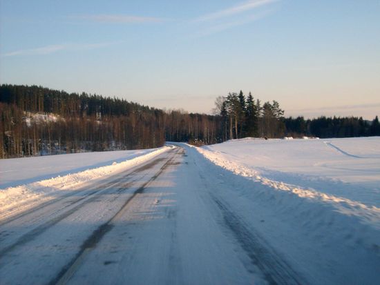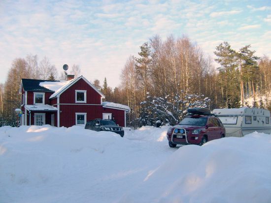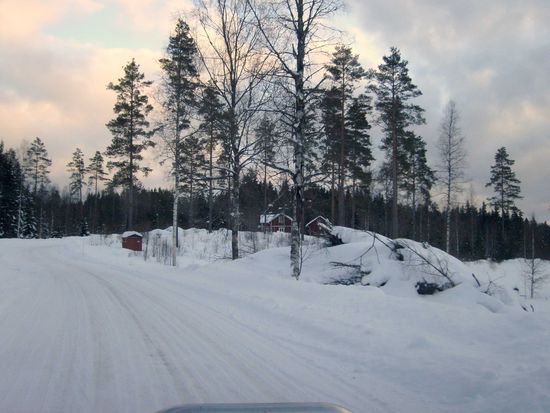 Hier weiter im Süden waren die Straßen etwas schlechter zu befahren. Offensichtlich war der Schnee auf der Straße angetaut und wieder überfroren. Aber mit unseren Winterreifen und entsprechender Vorsicht kamen wir sicher zum Ziel. Bei Euch in Deutschland ist das wesentlich extremer. Bei uns nennt man das Jojo-Wetter, wenn es immer wieder taut und friert. Eigentlich müßtet Ihr in Deutschland alle mit Spikesreifen fahren, aber das dürft Ihr ja nicht. Der Autoindustrie paßt es natürlich besser in den Kram, wenn möglichst viele Autos kaputt gehen und neu gekauft werden müssen.
