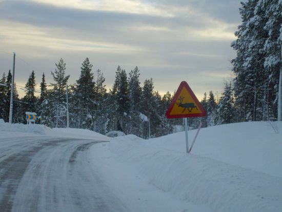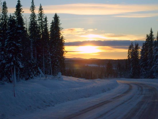 Dann ging es mit einer Zwischenübernachtung in Richtung Åre. Die Landschaft sah einfach herrlich aus, und kurz hinter Jokkmokk trafen wir Rentiere auf der Straße. Das Fahren war vollkommen problemlos, die Straßen waren gut geräumt und hatten eine festgefahrene Schneedecke, und wir haben ja auch richtige Winterreifen, die mit den kleinen Nägelchen. Bei einer Rast unterwegs in Wilhelmina konnten wir einen Wettbewerb im Eisblock-Sitzen beobachten. Das entspricht wohl dem Pfahlsitzen der Ostfriesen.