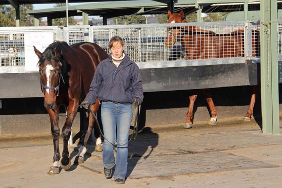 "Valentine Miss" in Caulfield drei Stunden vor dem Rennen. Auch das ist eine Belastung für die Pferde, drei Stunden auf der Rennbahn zu warten, bevor sie laufen. Immerhin steht sie entspannt in ihrem Stall, somit mußte ich nicht die ganze Zeit mit ihr laufen.